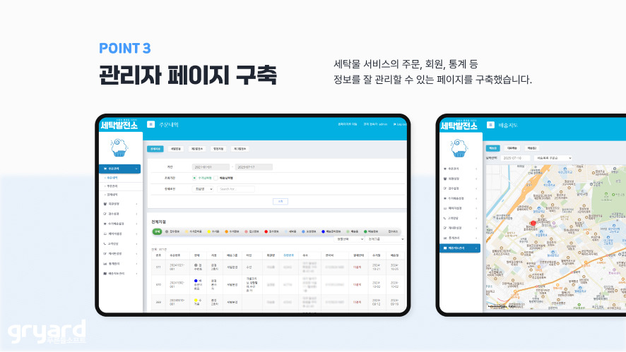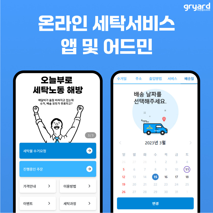 온라인 세탁 서비스 앱 및 통합 관리 시스템 구축 사례입니다.